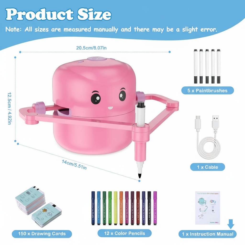 Sind Sie es leid, dass Ihr Kind den ganzen Tag am Handy klebt? Damit sind Sie nicht allein. Es ist Zeit für einen Wandel: Unser magischer Zeichenroboter unterhält Kinder und hält sie von Bildschirmen fern, während er gleichzeitig Kreativität, Hand-Augen-Koordination und kognitive Fähigkeiten fördert. Keine Screenshots. Keine Augenbelastung. Fantasie pur und gesunde Entwicklung.